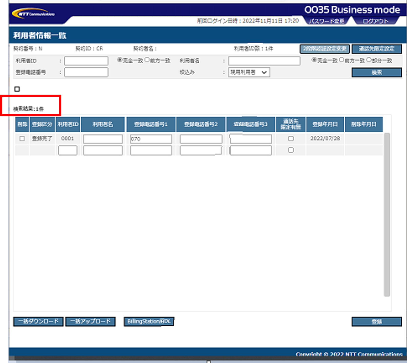 ・検索項目に何も入力せず、検索することで、登録済みの全利用者を照会することができます。