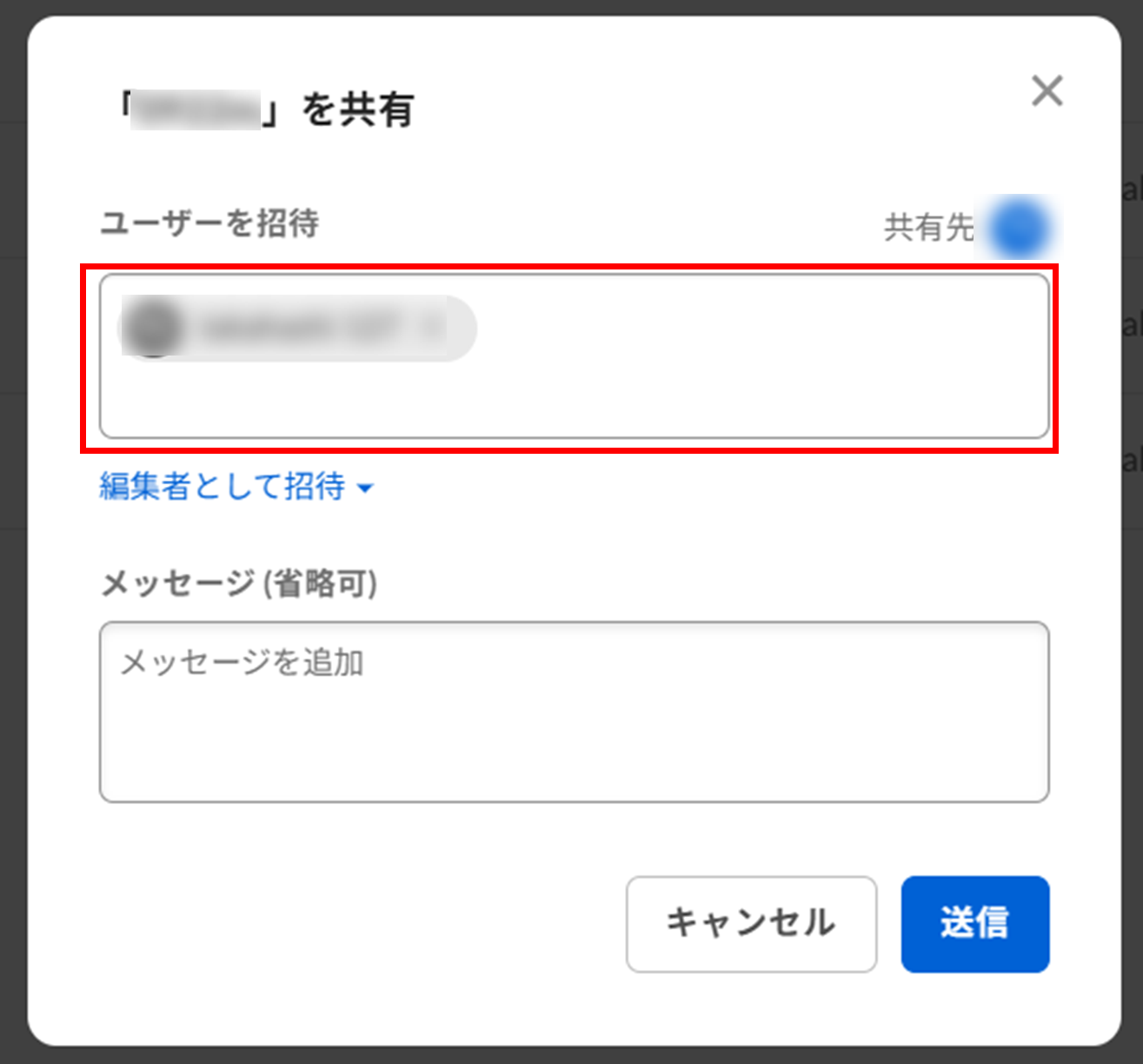 フォルダ設定にて、[コラボレーションを [自分の組織] 内に制限する] のチェックを外し保存すると、事象が解消されるか確認してください。