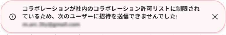 「コラボレーションが社内のコラボレーション許可リストに制限されているため、次のユーザーに招待を送信できませんでした」