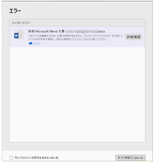 - 「○個の項目の更新中にエラーが発生しました」3を選択