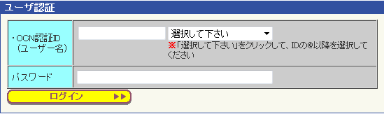 2. OCN認証IDの右側選択欄: 「ご利用内容のご案内」の「認証ID」欄に記載されている英数字の