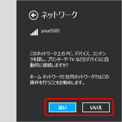 自宅や職場で、信頼できるユーザー/機器のみが利用するネットワークの場合 [はい]を選択