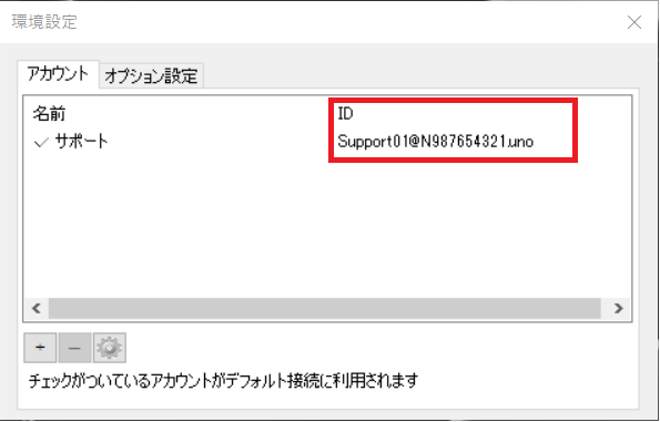 vAppのアカウント設定から、アカウントが「vClientID@NXXXXXXXXX.uno*」